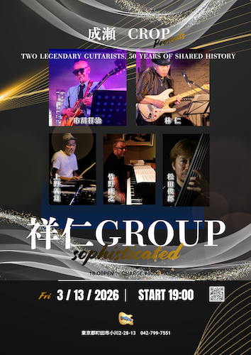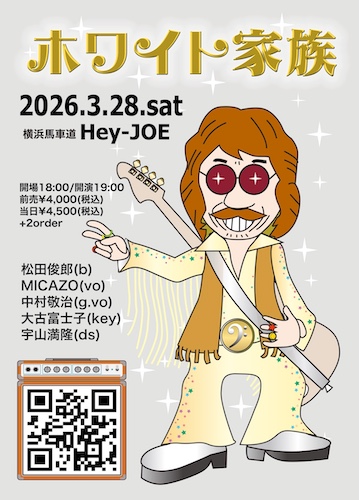 | 2026年3月28日(土) Hey-JOE (045-211-6907) 横浜市中区住吉町6-72 シャンローゼ関内B1F open 18:00 / start 19:00 / 前売 ¥4,000(税込)+2order・当日¥4,500(税込)+2order |